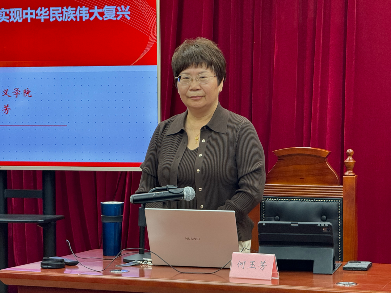 何玉芳教授从何为中华民族、中华民族共同体是怎样形成的,以及如何铸牢中华民族共同体意识三个方面展开阐述。她在讲述中指出,中华民族共同体是新时代党的民族理论与民族政策的核心概念,能够更好引领新时代民族工作前进方向、充分彰显中华民族的统一性,并突出强调中华民族多元一体格局的共同性与不可分割性。何玉芳教授强调,全体同学要深刻领悟铸牢中华民族共同体意识的理论内涵和实践要求,进一步深化对中华民族多元一体格局的认识,铸牢中华民族共同体意识。