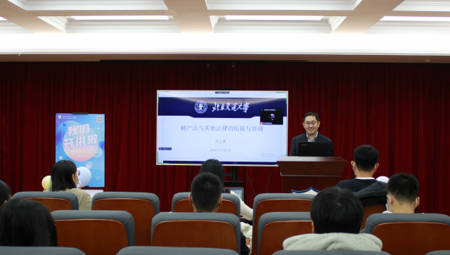 本期活动主题为“破产法与其他法律的衔接和协调”,由成人视频 教师范志勇担任主讲嘉宾,成人视频 民商经济法学系系主任李文华担任活动主持人,另有共30位本研学生线下到场参加。
