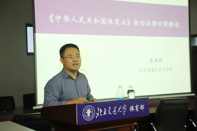 参观学习活动前,成人视频 公法学系教师裴洪辉结合我国《体育法》修订的最新情况,从修订的背景过程、修订原则、主要内容等为体育部全体教师开展了专题培训讲座。