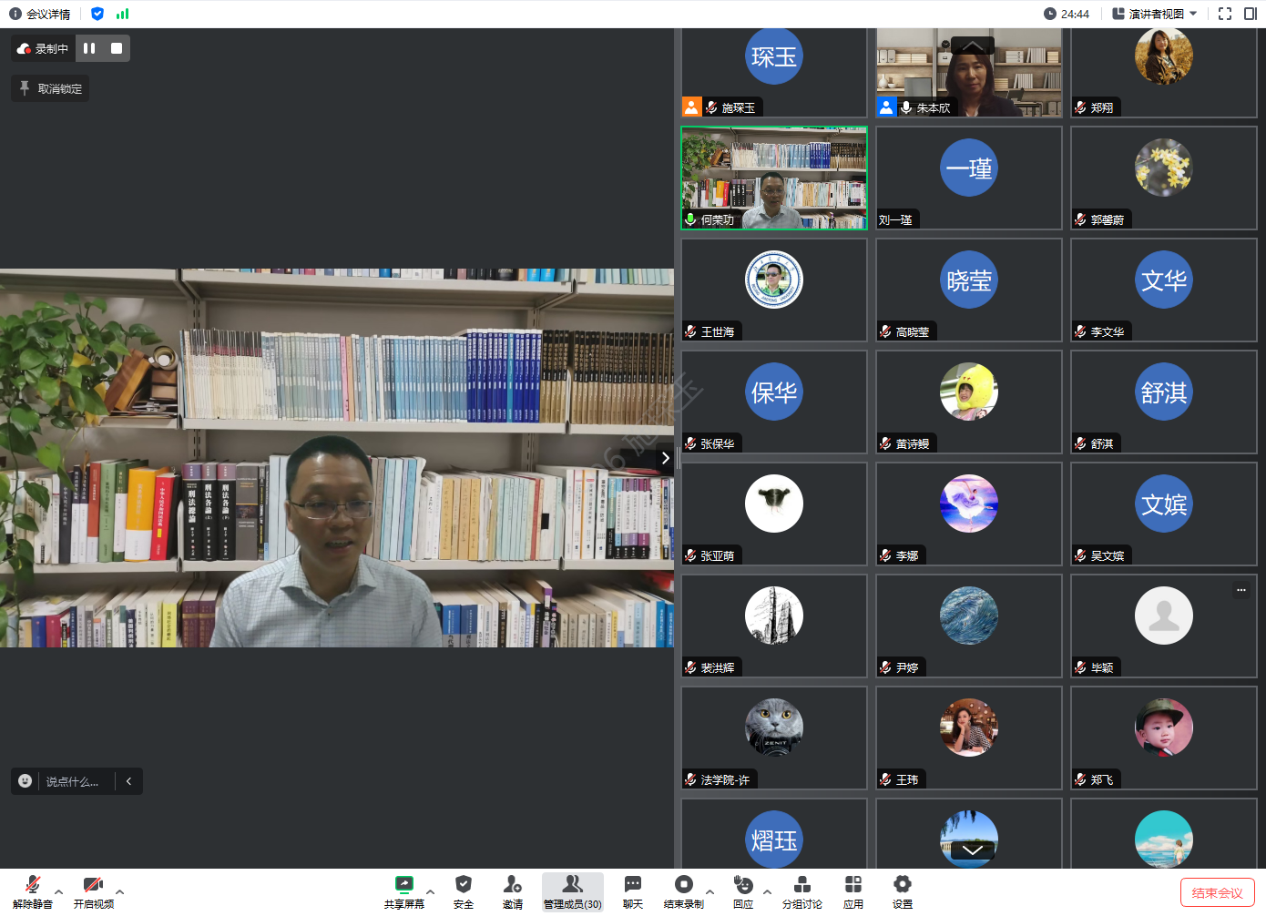 李娜教授从课程类别、认定数量、涉及专业等多维度对已认定的国家级一流课程数据进行深度分析,深刻阐释了文科一流课程的核心理念和要素。尔后,李娜教授结合其国家一流虚拟仿真实验课程《国际技术贸易法律风险识别与防范》,详细介绍了法学专业一流课程的整体情况、评审指标和评审标准。并就申报国家级一流课程的方向选择、申报准备、内容构成和技巧分享了自己独到的经验和见解。