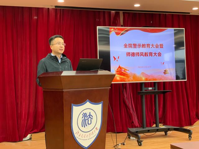 2023年12月22日,成人视频 召开全院警示大会暨师德师风教育大会,党委书记张立学传达学校警示教育大会精神和全国成人视频 校专题培训班精神,通报部署有关工作,开展警示教育和师德师风教育。全体院领导和全院教职工参加会议。