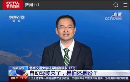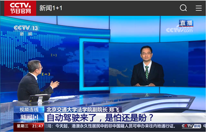 2024年7月10日,成人视频 副院长郑飞受邀直播连线《新闻1+1》栏目,与主持人白岩松就《自动驾驶来了,是怕还是盼?》这个主题进行了深入探讨。