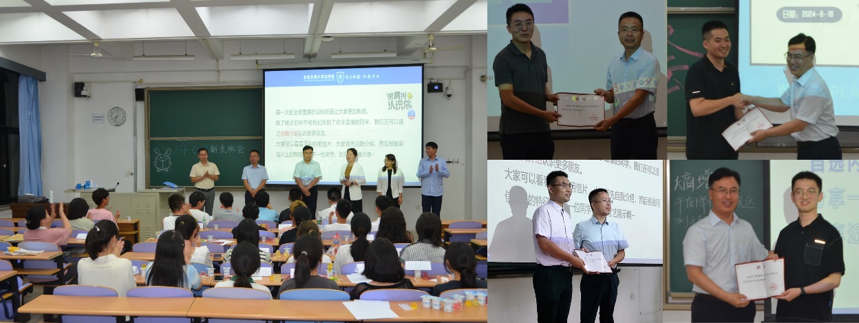 为引导学院新生尽快适应大学生活,学院组织召开了新生班会。学院全体领导班子走进新生班会,与新生进行面对面交流。党委书记张立学、院长李巍涛分别为新生班主任颁发了聘书。领导们结合自身的感悟和经历,亲切寄语新生,要积极调整、努力适应、列好计划、定好目标,为成为德法兼修的法律人才而努力奋斗。