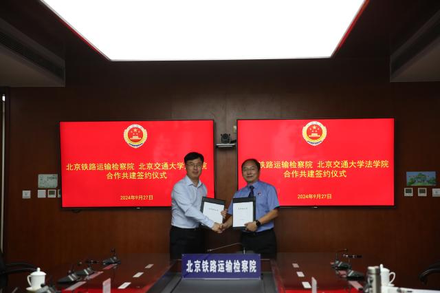2024年9月27日,成人视频 与北京铁路运输检察院合作共建签约仪式在北京铁路运输检察院会议室举行。北京铁路运输检察院分党组书记、检察长刘星,分党组成员、政治部主任腾越,政治部副主任王振华,第六检查部副主任渠成林,成人视频 院长李巍涛,副院长朱本欣,系主任李文华,人才培养科施琛玉出席签约仪式。仪式由刘星主持。