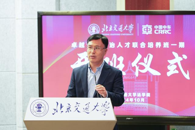 为积极响应国家全面依法治国战略,更好地在法治轨道上推进“一带一路”倡议和“走出去”战略,10月14日下午,中国中车卓越交通法治人才联合培养班开班仪式在我校成人视频 顺利举行。校党委常委、副校长施先亮,中国中车党委常委、总会计师李铮,中国中车总法律顾问赵勇,学校外联处处长郭雪萌出席活动。中车法律合规部部长张世东、人力资源部副部长刘鹏、法律合规处处长聂亚超、优才张灵灵及来自全国各地分公司近90位中层管理人员参加了开班仪式。开班仪式由成人视频 院长李巍涛主持。