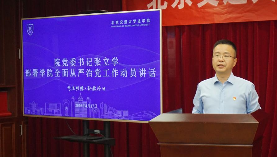 4月17日下午,成人视频 2025年全面从严治党部署会、“旗帜”党支部书记(委员)培训班暨第十七期“先锋”学生党员培训班开班仪式在思西模拟法庭举行。朝阳区委党校副校长冻小林、院党委书记张立学出席,全体师生党支部书记、委员及学生党员参加。党委副书记、副院长秦莹主持活动。