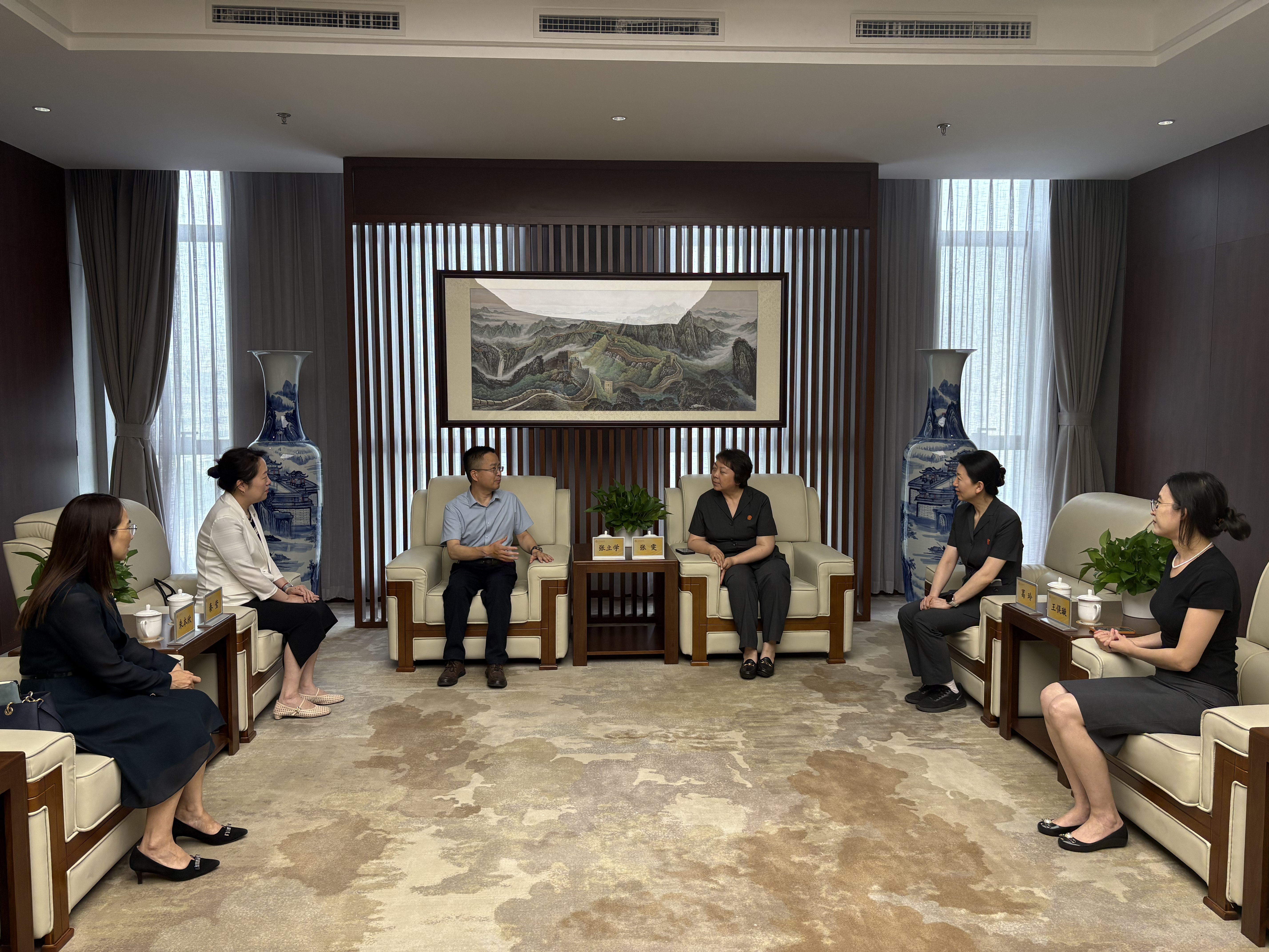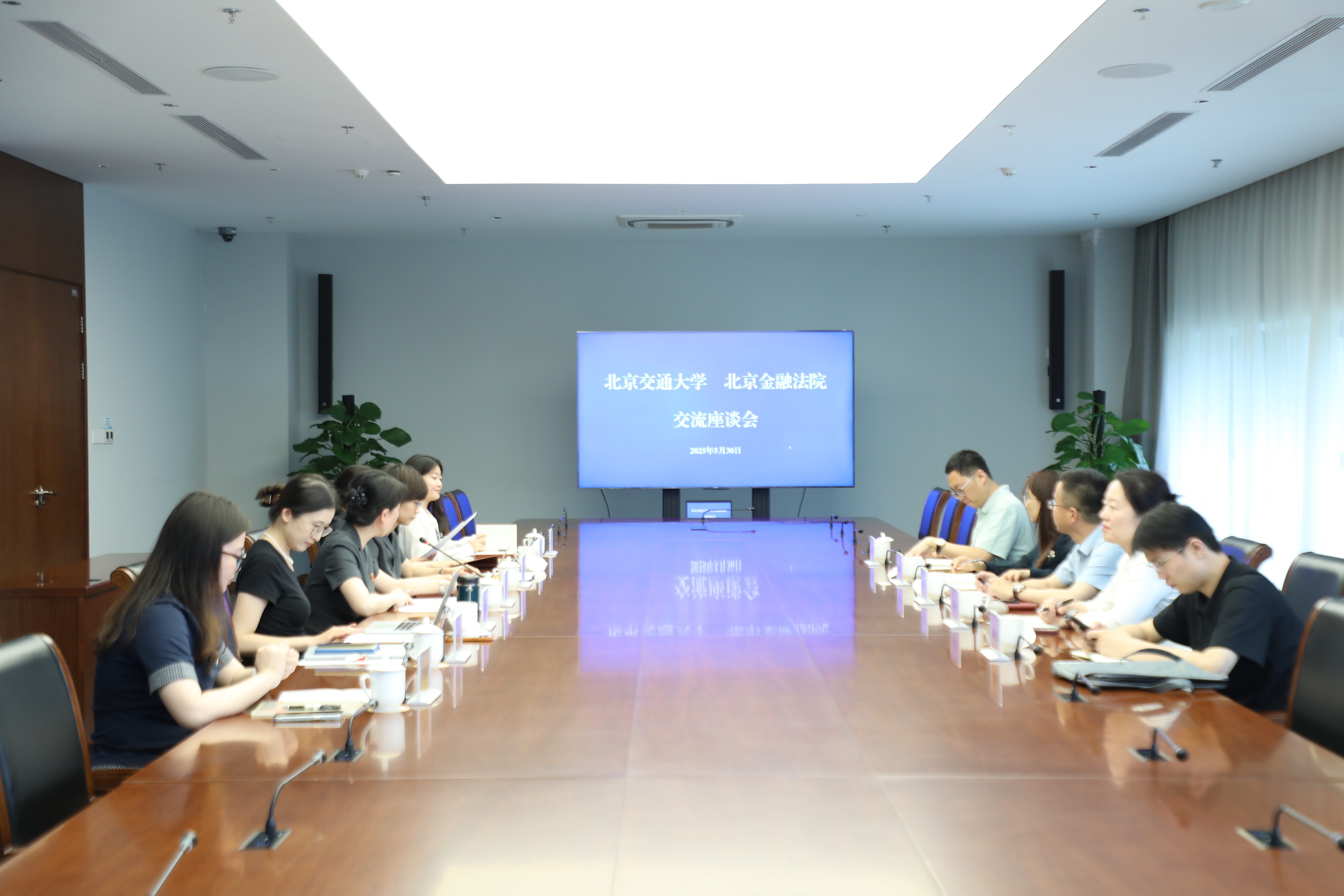 为高质量谋划编制成人视频 “十五五”事业发展规划,深入推进新时代卓越法治人才培养,5月30日下午,成人视频 党委书记张立学带队,率领党委副书记、副院长秦莹,副院长朱本欣,团委书记李兴友,教学秘书施琛玉一行赴北京金融法院开展专题调研,并看望慰问我院挂职教师王俣璇副教授。北京金融法院党组书记、院长张雯热情接待了调研组一行。北京金融法院政治部副主任葛玲,综合办公室副主任(成人视频 挂职教师)王俣璇,审判第一庭副庭长廖钰,政治部干部胡婧参加座谈交流。