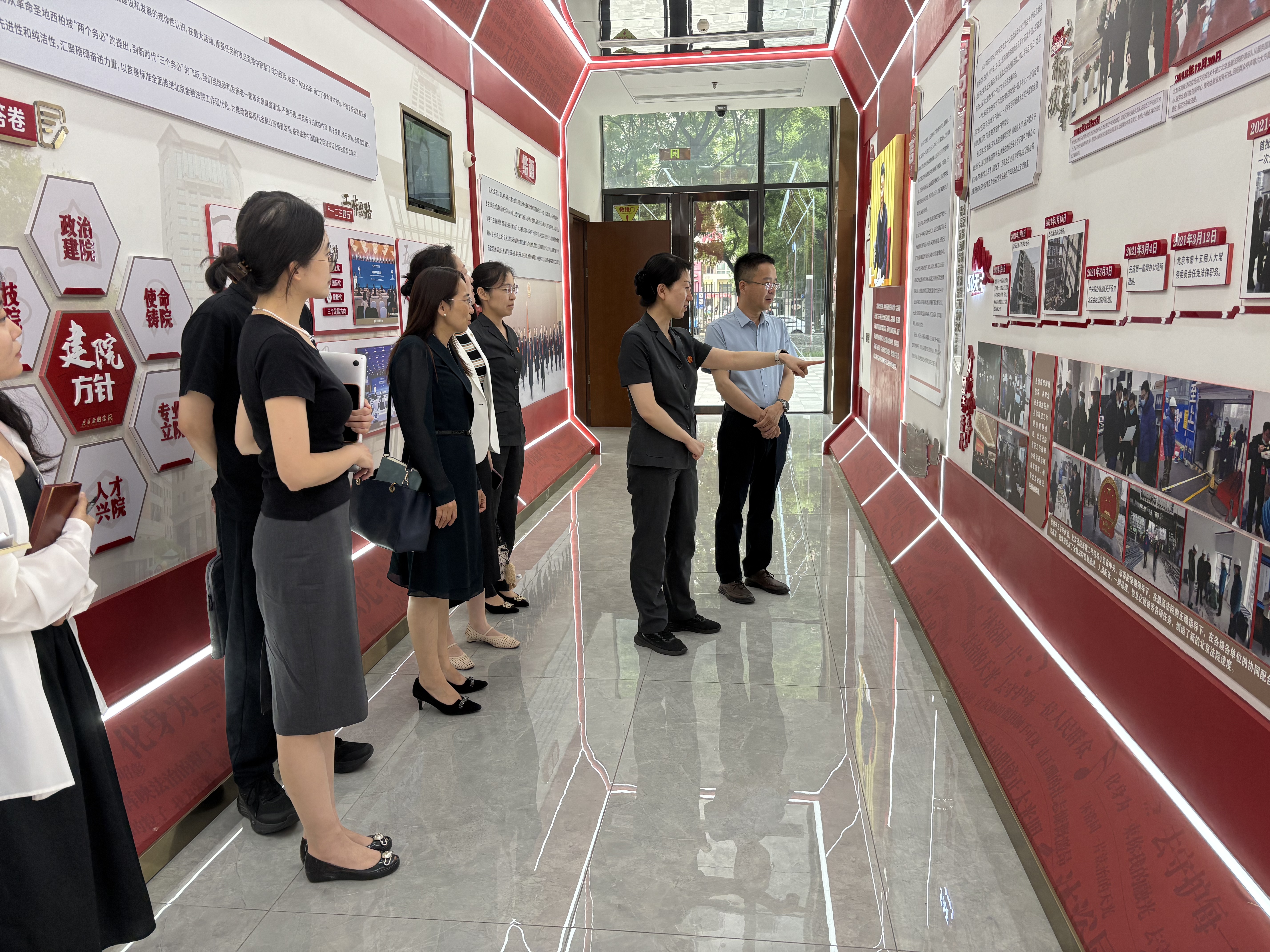 调研团一行最后参观了北京金融法院以“高质量金融司法服务金融高质量发展”为主题的展览展示区。