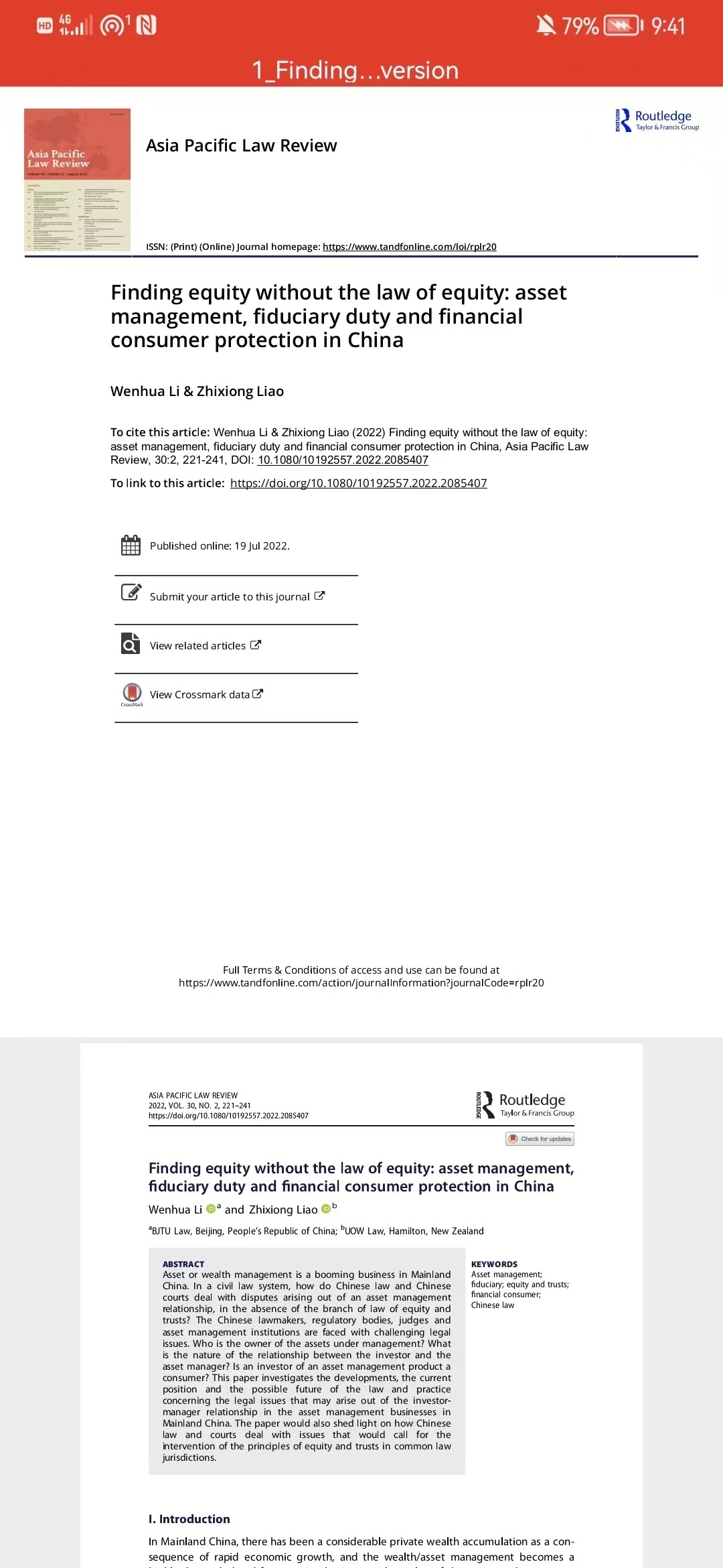 《Asia Pacific Law Review(亚太法律评论)》近期刊发了成人视频 副教授李文华老师和新西兰怀卡托大学成人视频 教师廖志雄博士合撰的论文《Finding Equity without the Law of Equity: Asset Management, Fiduciary Duty and Financial Consumer Protection in China(在没有衡平法的情况下寻找衡平:中国的资产管理、信义义务与金融消费者保护)》。