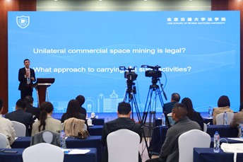 4月25日, 颜永亮老师在“空间法发展的挑战和趋势”专题报告会上,做英文论文主题双语演讲,论文题目为“Space Environmental Ethics for Space Mining in the Solar System”(中文为“在太阳系进行外空采矿的环境伦理”)。