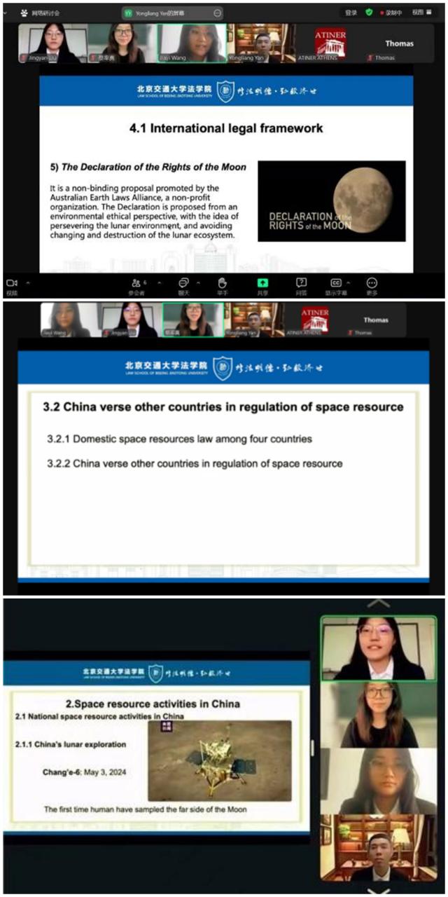 雅典时间5月7日上午9点(北京时间下午2点),颜永亮老师、蔡率真同学、王嘉谊同学和刘靖妍同学四人在会议上做了论文题目为《国家空间资源活动监管:以中国为例》(Regulation of National Space Resource activities: China as a Case Study)的主题报告。师生四人自信流利、条理清晰的演讲在国际舞台上展现了成人视频 师生的风采。该讲演得到与会学者的高度评价,讲演结束后,部分学者以问答的形式对主题所涉学术问题进行了深入探讨,颜永亮老师一一给出解答和评论。